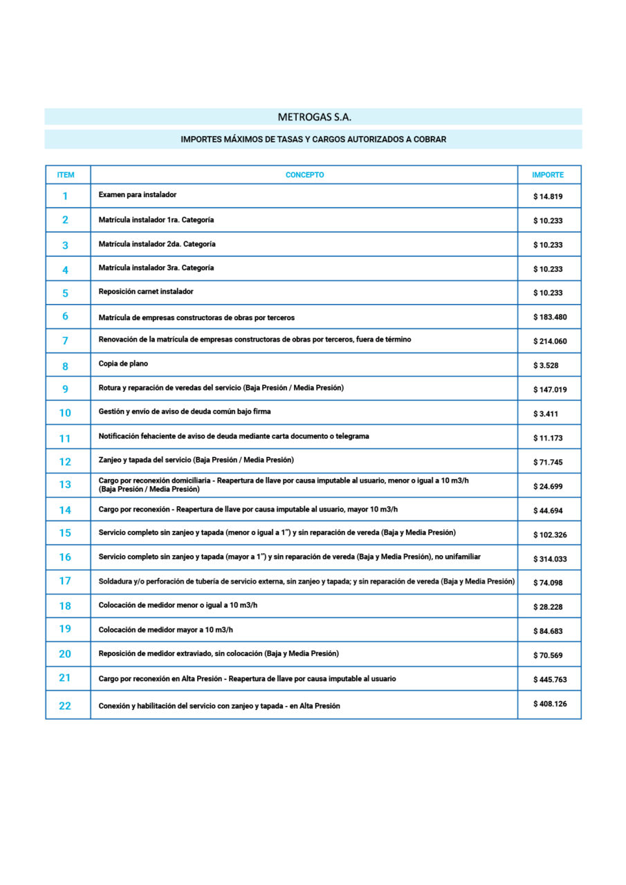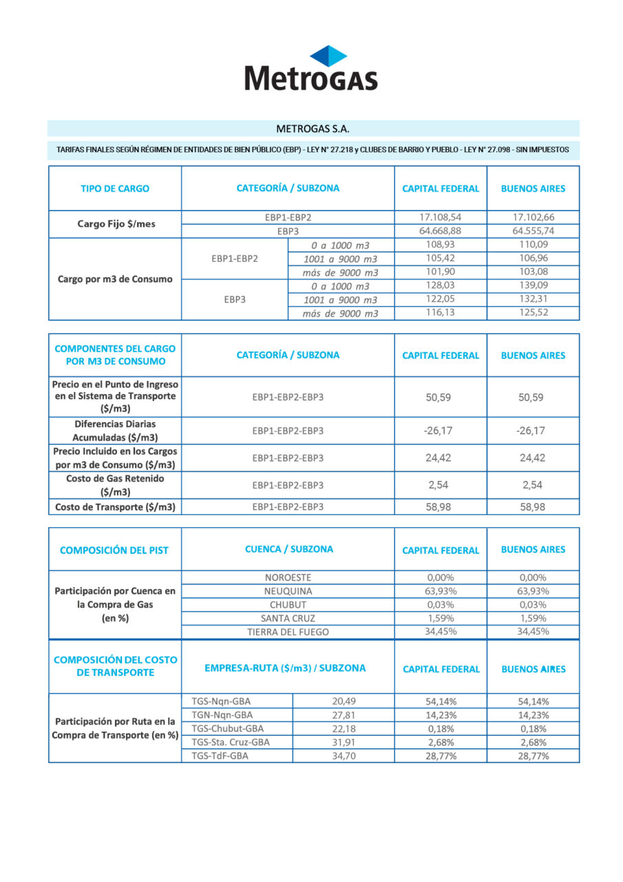 P1: Tarifa Servicio General 1 CA: Capital Federal