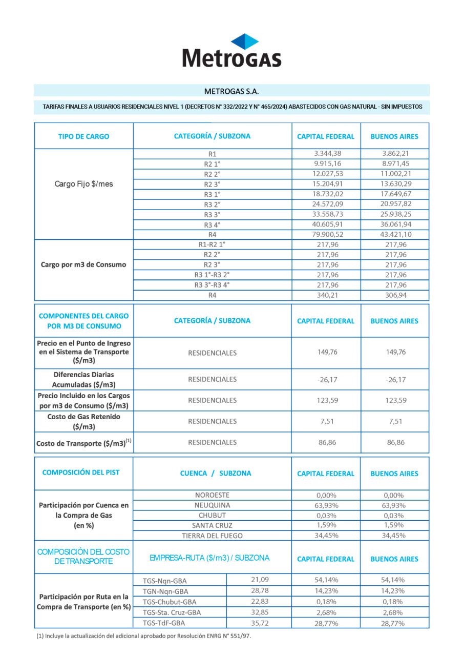 Los beneficiarios de la Tarifa Social contarán con bloques de consumo subsidiado que se complementan con los correspondientes al segmento de menores ingresos (N2). La determinación del descuento por Tarifa Social se aplicará de acuerdo a lo establecido en la Nota ENARGAS NO-2024-66523039-APN-DIRECTORIO#ENARGAS