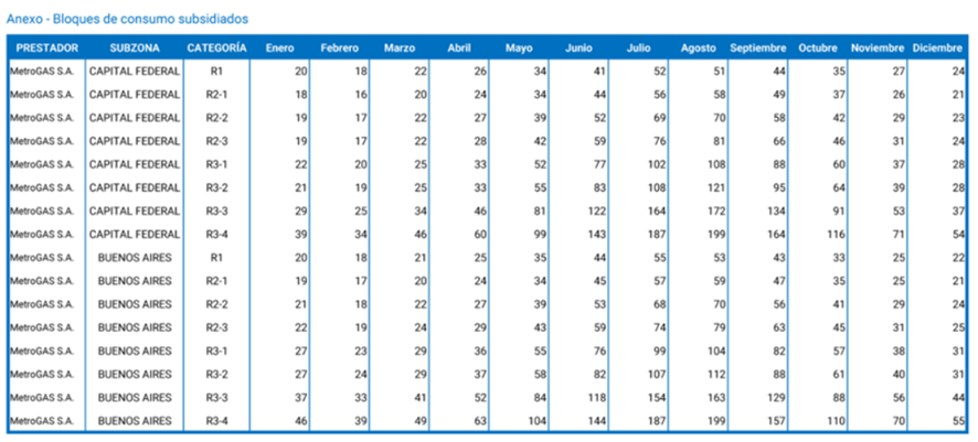 Se mantienen los bloques de consumo base de gas natural fijados en las Resoluciones de la SECRETARÍA DE ENERGÍA del MINISTERIO DE ECONOMÍA Nros. 686/22 y 91/24.
